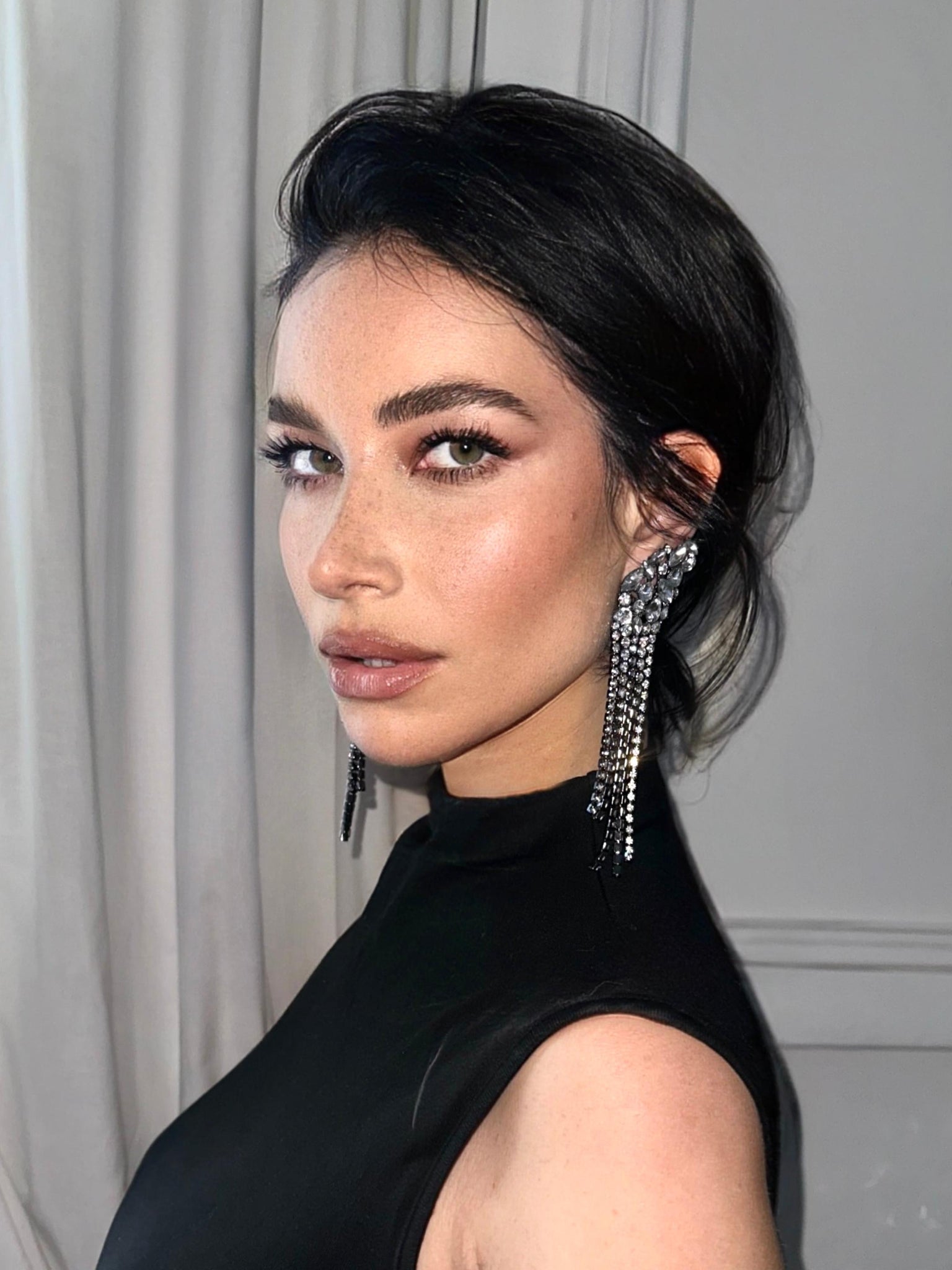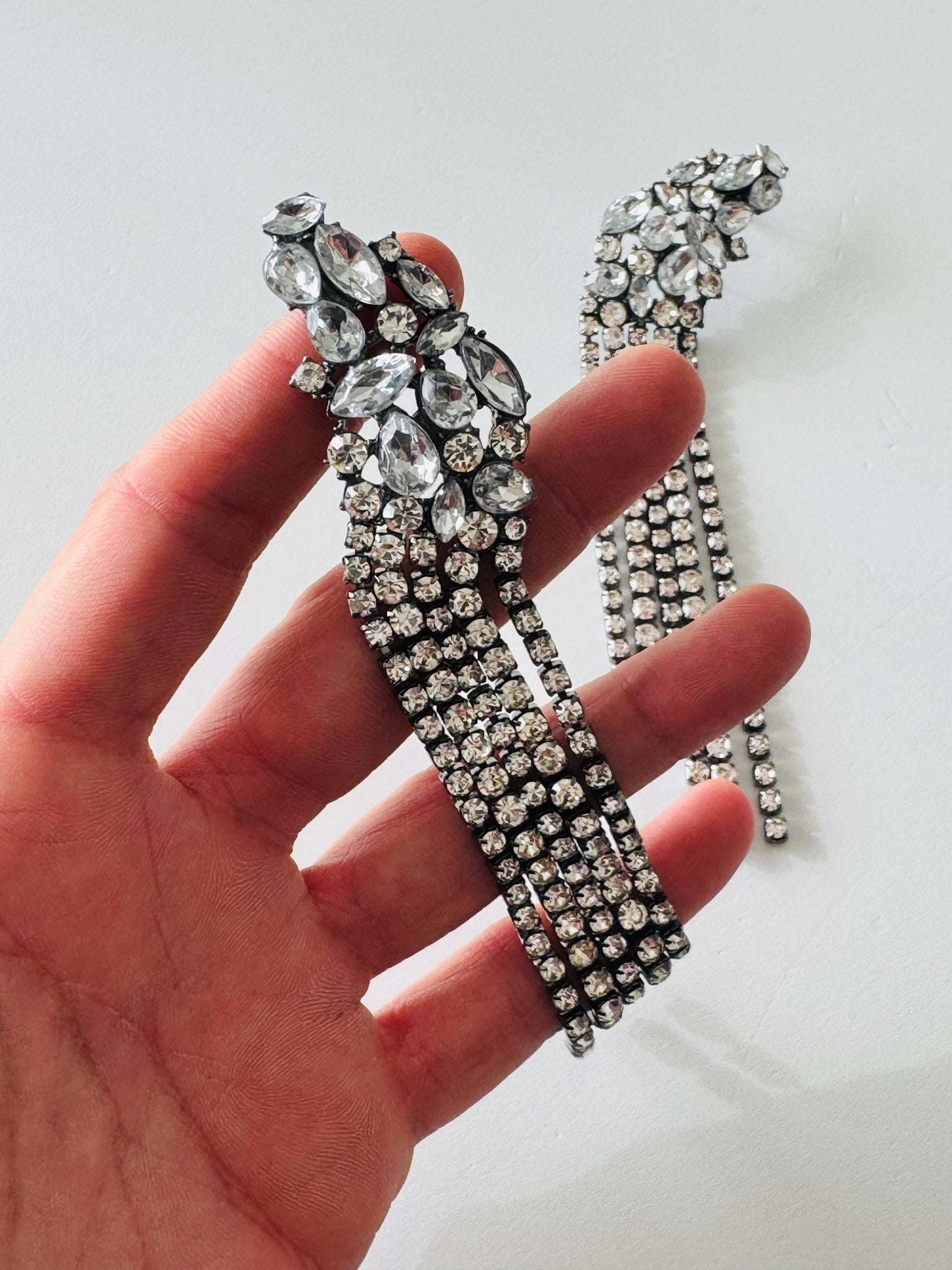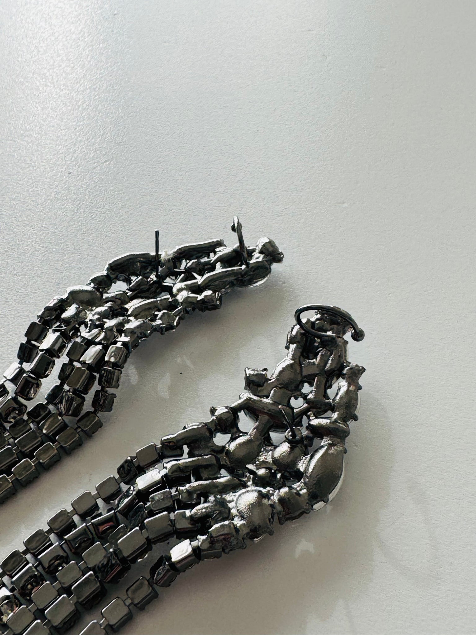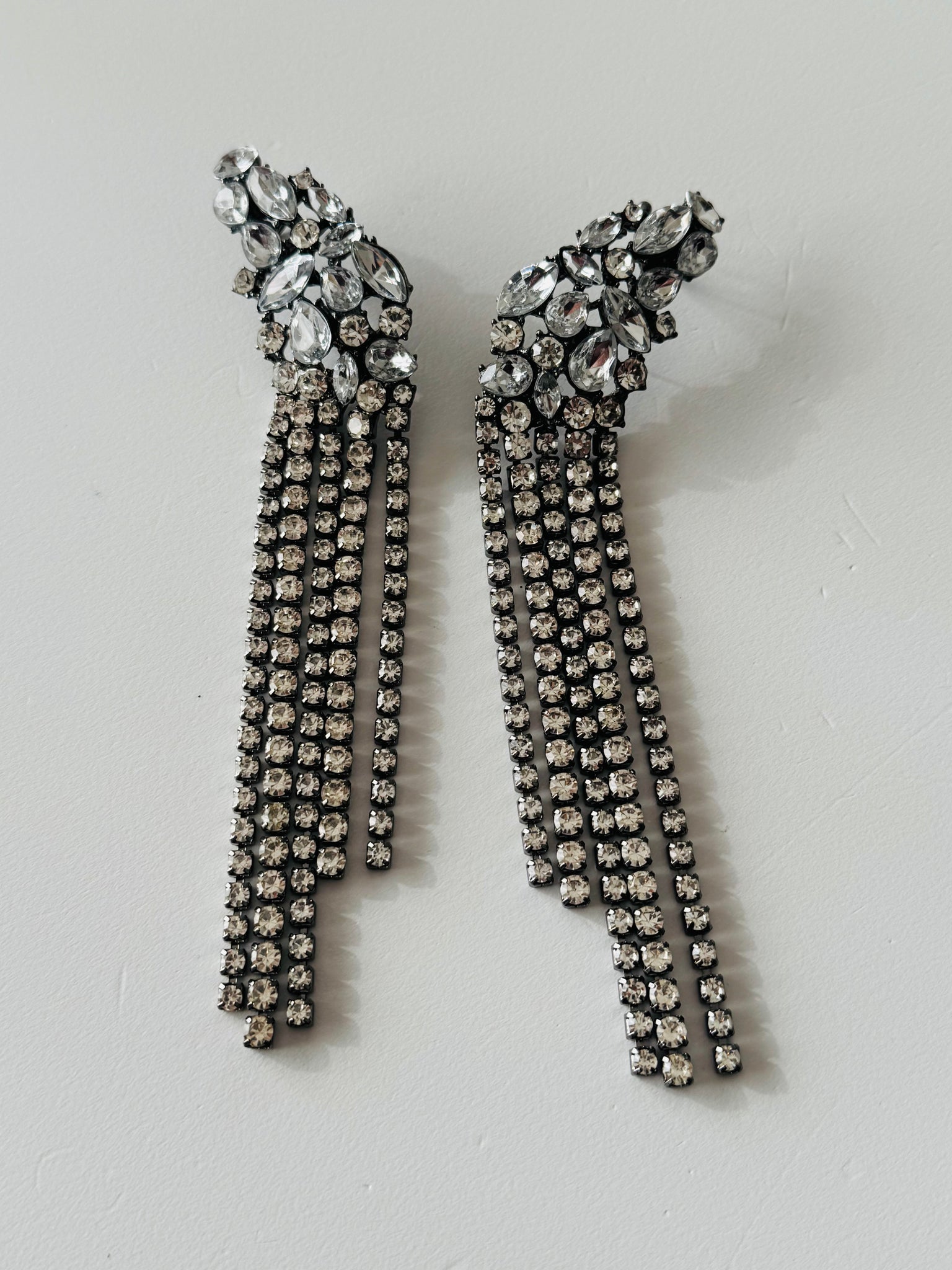 Orecchini in cristallo a gradazione base colore antracite , modello con aggancio buco ed earcuff