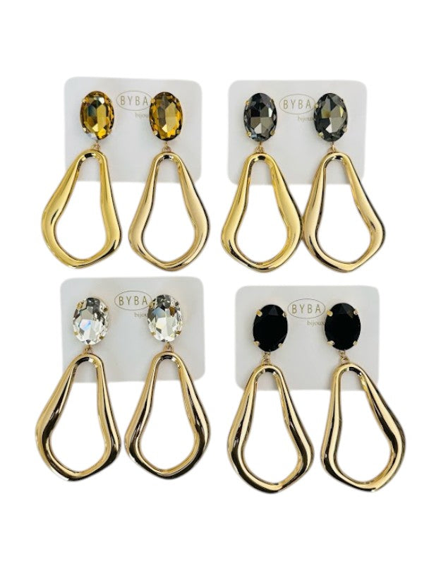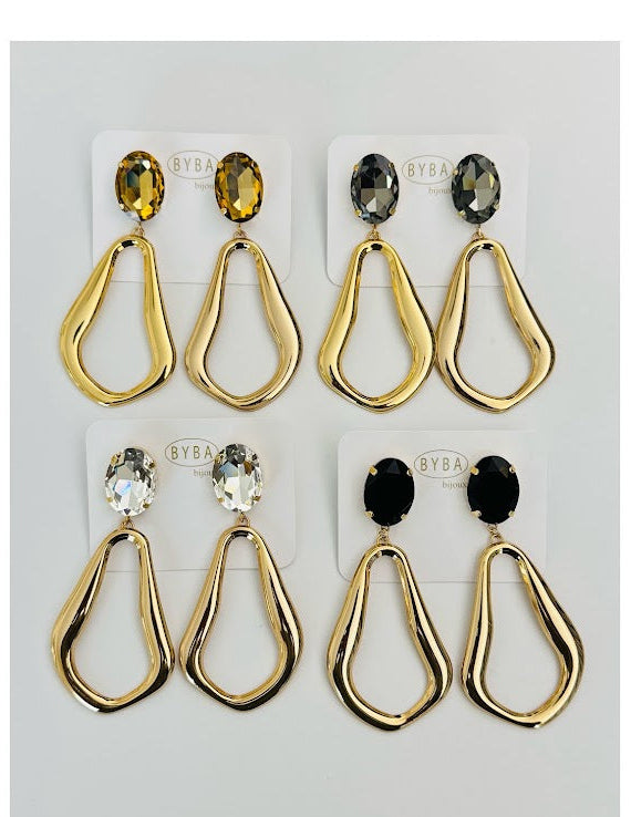 Orecchini a buco cristalli e pendente in metallo oro lucido